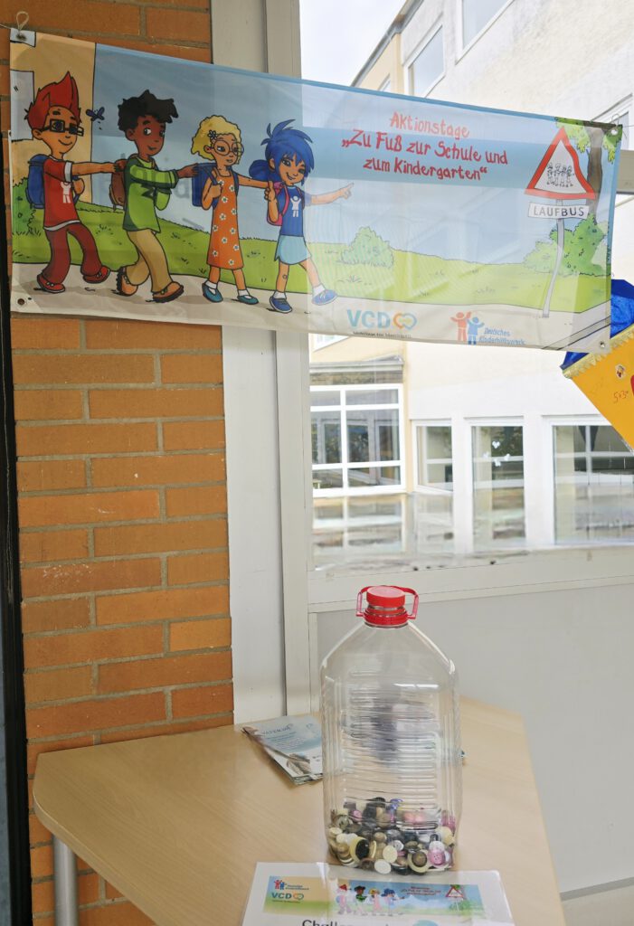 In diesem Jahr starten wir eine kleine Challenge: Schaffen es die Kinder der Grundschule Karlstein einen 5 L-Wasserkanister zu füllen? Jedes Kind darf pro gelaufenem Schulweg (Hin- und Rückweg, dazu zählt natürlich auch der Weg zur Bushaltestelle und zurück!) einen Knopf in den „dafür extra präparierten“ Kanister stecken. Mal schauen, ob wir es schaffen, ihn innerhalb einer Woche zu füllen oder sogar noch einen Zweiten? Am Ende der Aktion wartet dann eine Überraschung auf die Kinder!